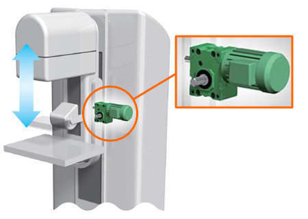 乳腺X光机在其旋转、压缩和升降机构中均采用蜗轮减速机。自锁机构确保了安全安静的运行,让患者能够舒适安心地进行检查。