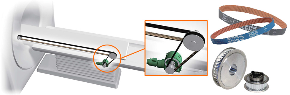 使用超长同步带即使在长行程中也能实现床体的移动。与链条相比,它能实现更安静、更清洁的运行。