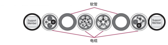 支撑构件内置于管内,可抑制弹跳并实现长行程。电缆和管材采用扁平焊接结构,因此产生的粉尘量极少。