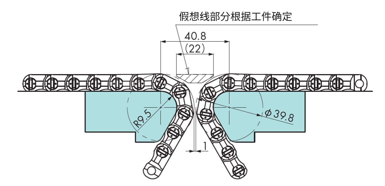 链子宽度为5mm、10mm时,使用了开叉销,实现了可靠的固定和容易的切换性。