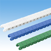 通过将电缆、管道和支撑部件安置在专用的氟树脂舱中,可以防止磨损粉的散落,从而在椿本电缆拖链系列中实现最低的粉尘产生量,并达到ISO 1 级标准。这提高了生产设备的质量可靠性。