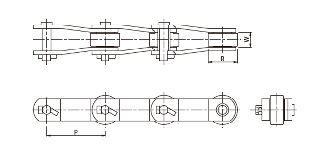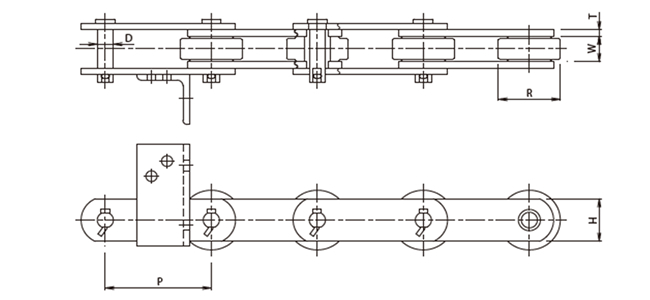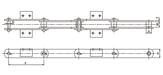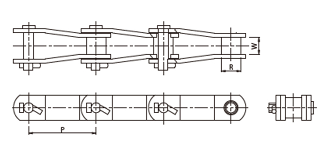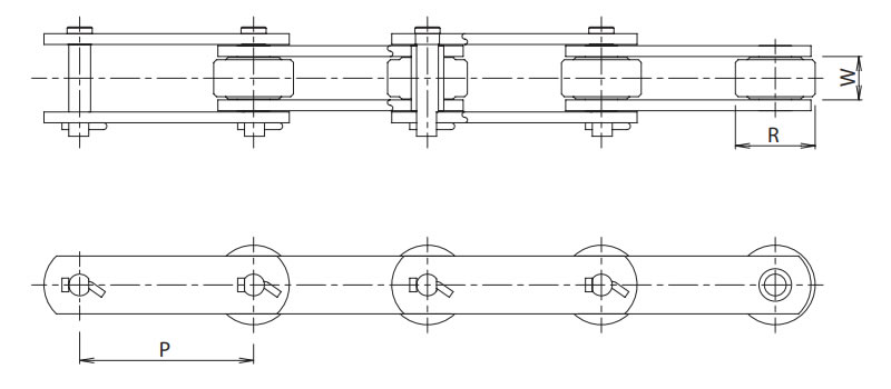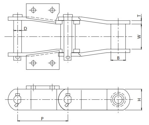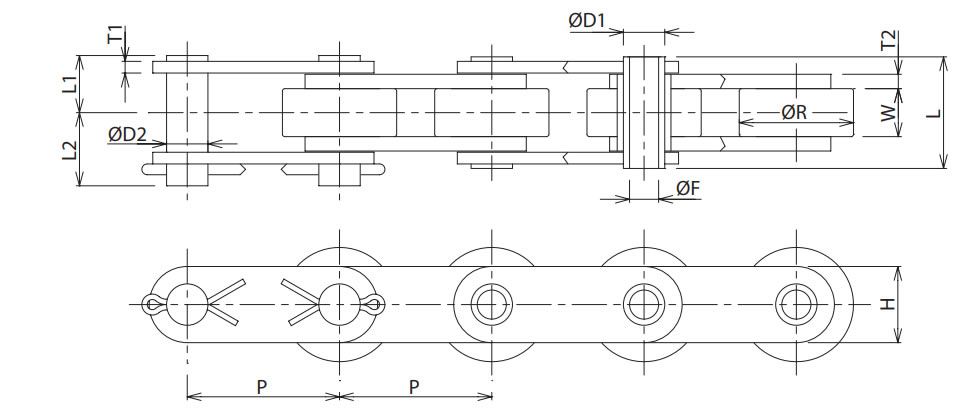 | Chain No. | P | R | W | T1 | T2 | H | D1 | D2 | F | L | L1 | L2 |