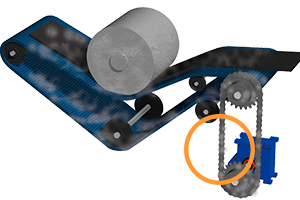 由于片材输送容易受到水和脱模剂的溅射,因此采用耐腐蚀的传动链驱动。