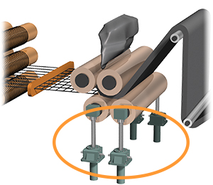与梯形螺杆配合使用,用于调节辊之间的间隙。由于旋转不均匀性小,辊的定位精度得到提高。
