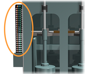 椿本的电缆拖链用于保护硫化机的电缆,而沿着天花板运行的AUTRAN VANGUARD则用于保护输送设备。