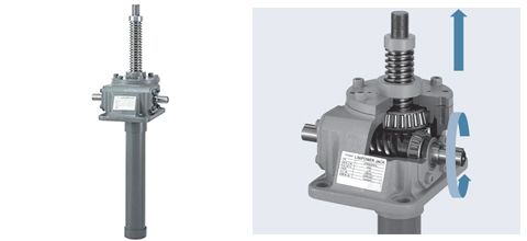 该千斤顶由梯形螺杆或滚珠丝杆和蜗轮蜗杆组合而成。