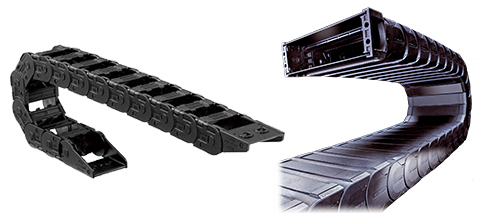 椿本的电缆拖链允许电缆穿过车身,可靠地支撑和引导移动装置和固定端之间的电缆。