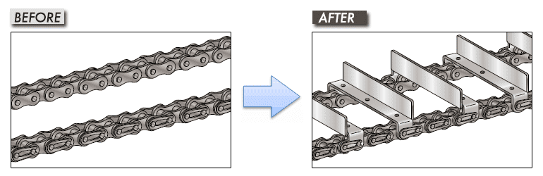 为了进一步提高原装链条夹具 (板条) 的耐腐蚀性和寿命,我们建议改变板条的材料和基础链条的规格。