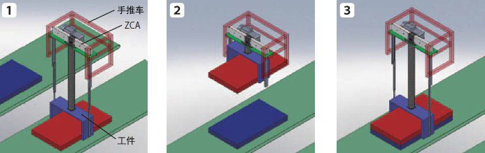 输送机之间的移载台车 (安装在天花板行走台车上)
