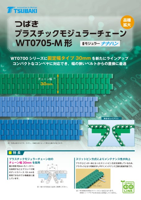プラスチックモジュラーチェーン WT0705-M形 固定幅タイプ 30mm (No.21201)