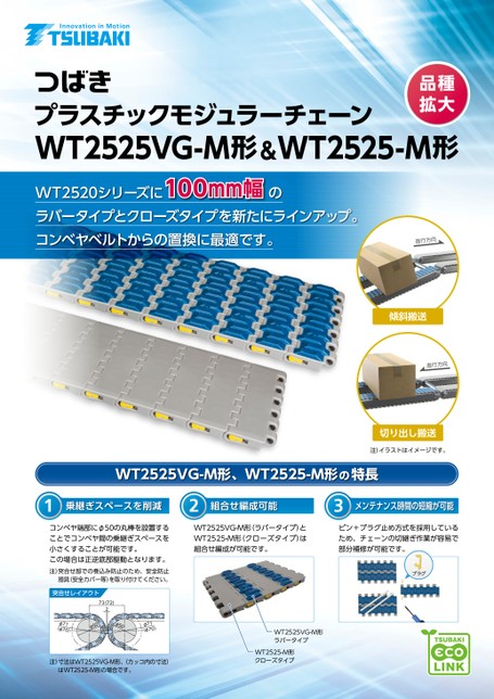プラスチックモジュラーチェーン WT2525VG-M形&WT2525-M形コンベヤベルト置換用 (No.23201)