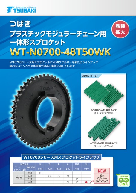 プラスチックモジュラーチェーン用 一体形スプロケット Φ50ダブルキーWT-N0700-48T50WK (No.21202)