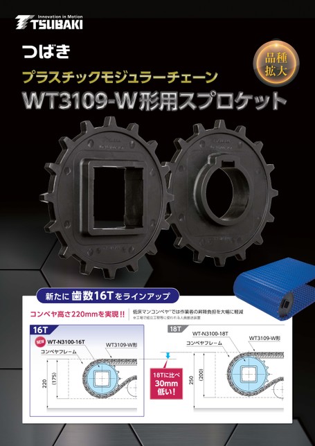 プラスチックモジュラーチェーン WT3109-W形 低床化マンコンベヤ向け (No.20170)