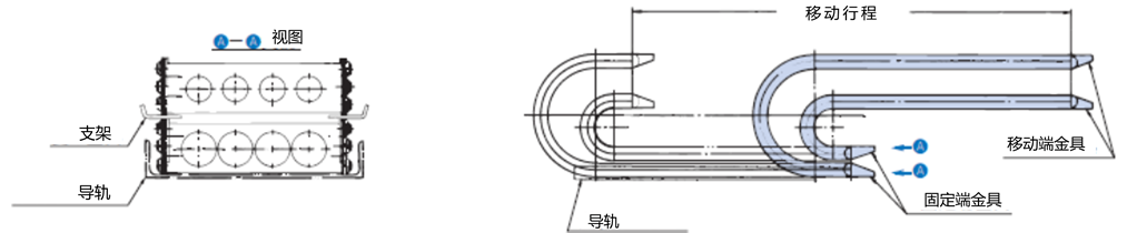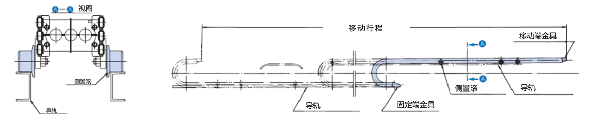 - 两侧都需要导轨,以防止电缆拖链晃动或倾倒。