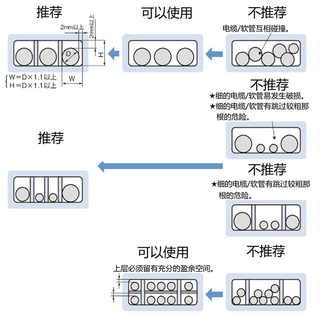 电缆拖链内宽 ≧ Σ(外径 x 1.1) + 隔板厚度 x 隔板数量