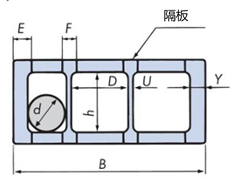 B':最小所需框架宽度;U:隔板厚度;Y:连接板厚度