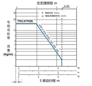 找出左表中横轴3m与纵轴4kg/m的交点,选择满足这一点的TKC47H36。