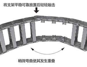电缆拖链有凸起,因此当其外缘贴合地面时,两端会翘起。在这种情况下,需要在两端放置垫木并对齐销孔。