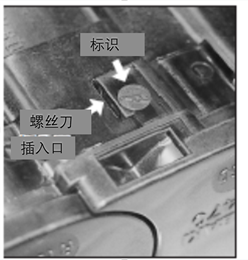 插入平头螺丝刀,将螺丝刀旋转90°或扶起挖开。
