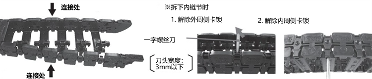 从移动端到第3个连杆有端片时,金属零件无法放入,因此取下端片。端头采用星形孔自攻螺栓组装,因此需要专用螺丝刀。