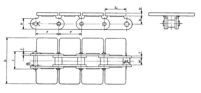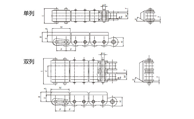 带有山形附件 RE 是适合搬运各种棒状物品的链条。