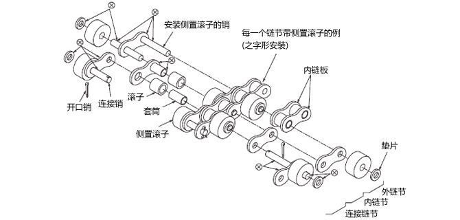 1. 为方便起见,“链体”一词是指除侧置滚子以外的整个链条。