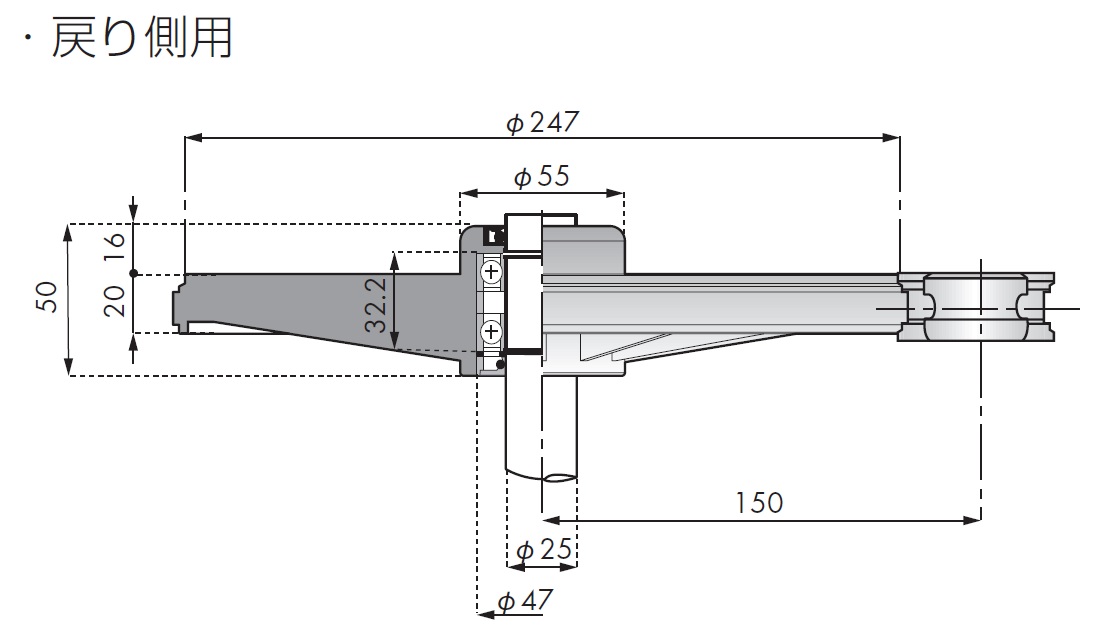 1.搬送側用と帰り側用はシャフト貫通の可否のみが異なります。