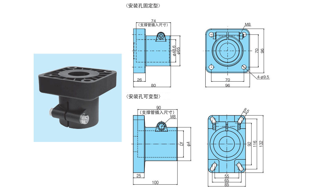 用于将管道固定在框架上。支持头内部的布线也是可能的。