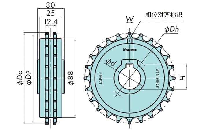 | 型号 | 齿数 | 节距圆直径 DP mm | 外径 Do mm | 轴孔 形状 |