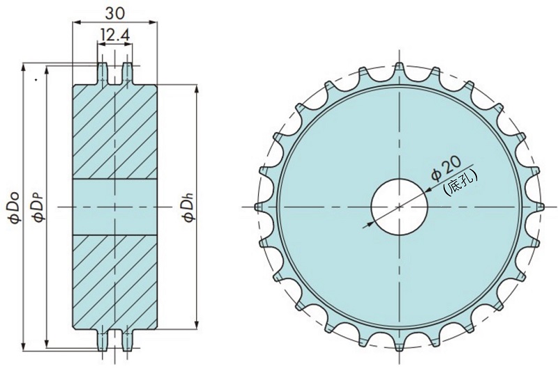 | 型号 | 齿数 | 节距圆直径 DP mm | 外径 Do mm | 轴孔 形状 |