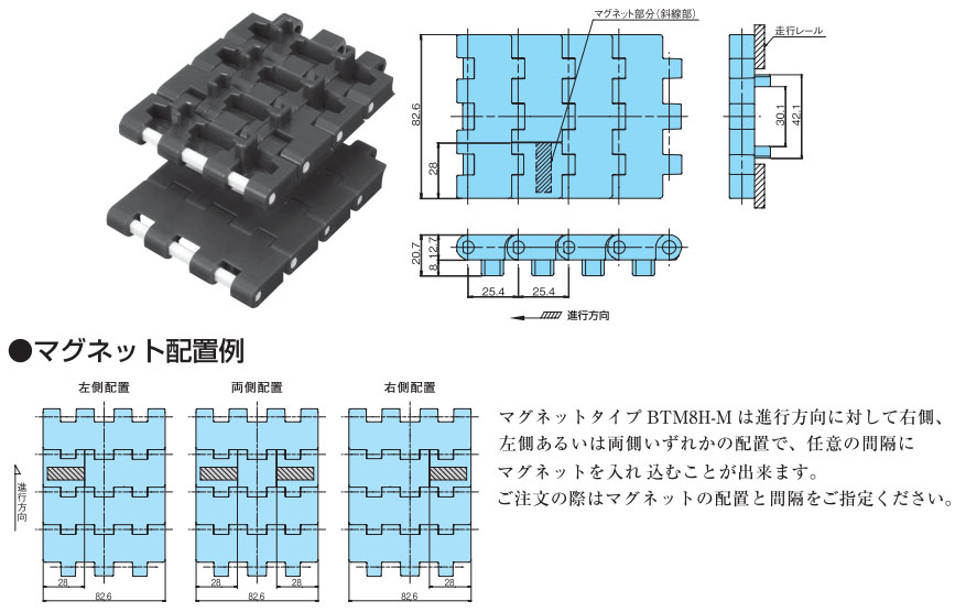 • ·我们推出了适用于平坦部搬运的封闭型BTC8H-M和适用于倾斜部搬运的磁铁型BTM8H-M。