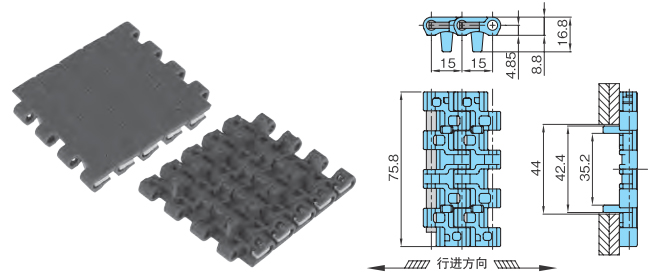 塑料模块链条WT1505G-M 型主要规格