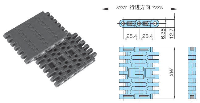 プラスチックモジュラーチェーンWT2505-M形 主要諸元