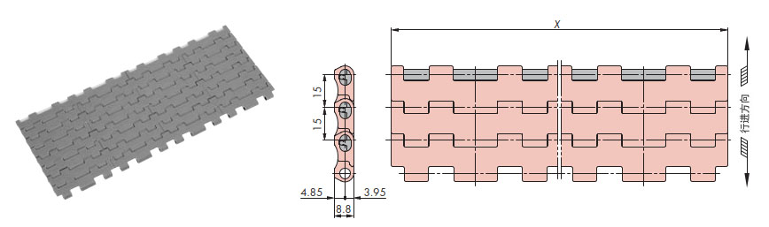 链节距(mm) 开孔率%