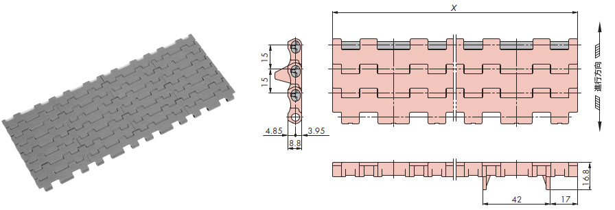 プラスチックモジュラーチェーンBTC5-A形 主要諸元