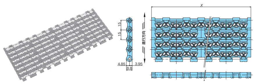 链节距(mm) 开孔率% 后弯半径mm