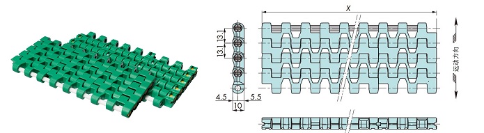 プラスチックモジュラーチェーンWT1306-W形 主要諸元