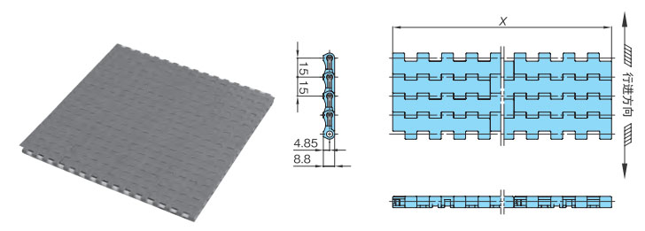 プラスチックモジュラーチェーンWT1505-K形 主要諸元