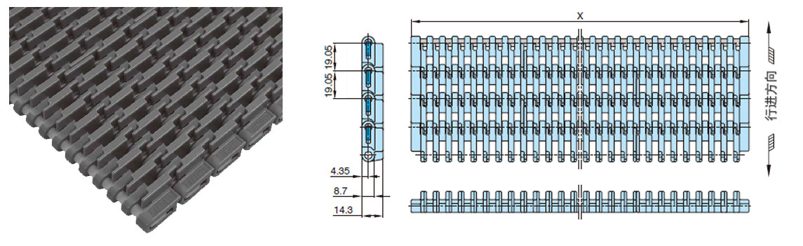 プラスチックモジュラーチェーンWT1907-K形 主要諸元