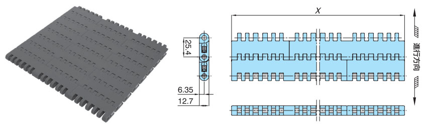 プラスチックモジュラーチェーンWT2505-K形 主要諸元
