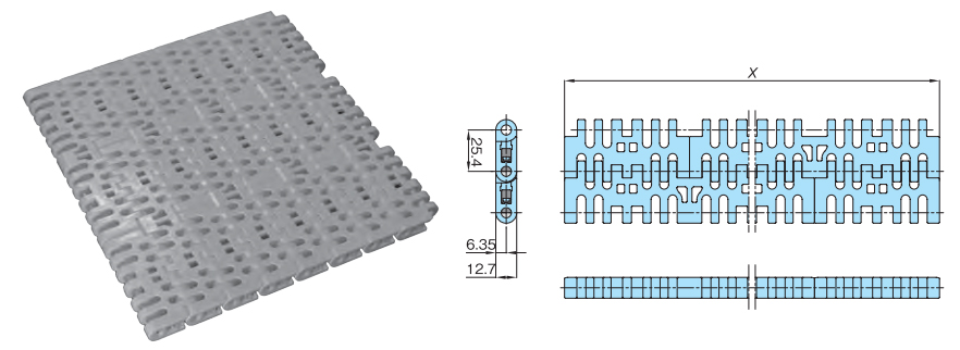 プラスチックモジュラーチェーンWT2506-K形 主要諸元