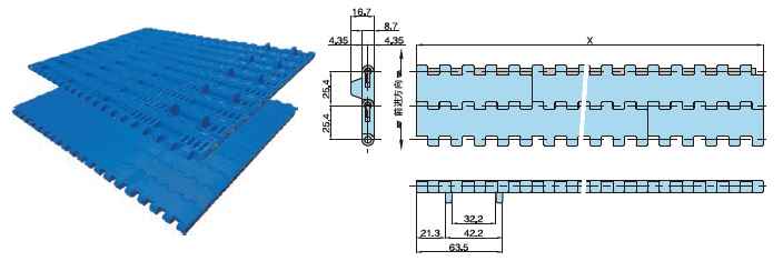 プラスチックモジュラーチェーンWT2515G-W形 主要諸元
