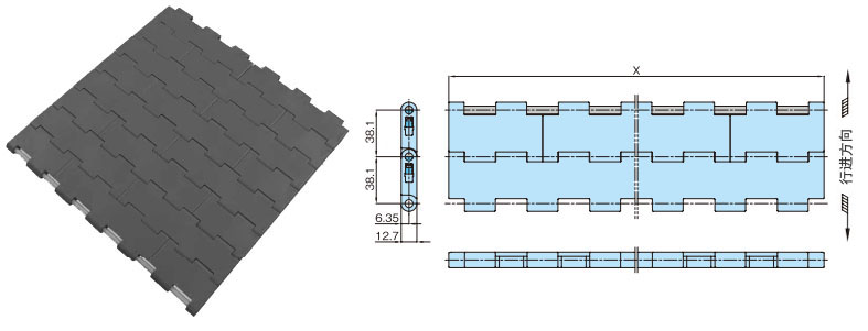 プラスチックモジュラーチェーンWT3835-K形 主要諸元