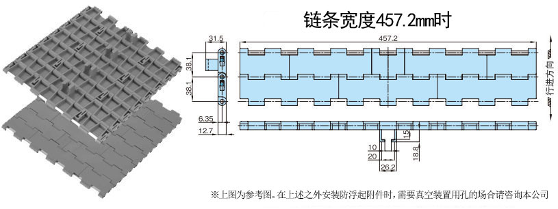 プラスチックモジュラーチェーンWT3835TRN-K形 主要諸元