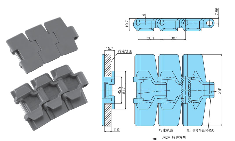 • ·链节高度比TPU型小,可以紧凑布局。