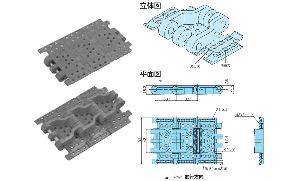 • ・TPS形と同じ基本寸法。チェーンの取替えのみで容器の安定搬送が可能になります。