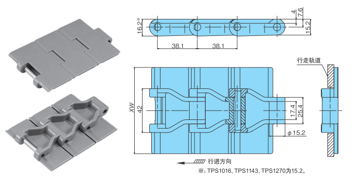 • - 可以使用与弯曲输送机塑料顶板链条(TTUP、TPU 型)相同的链轮,从而实现零件共享。