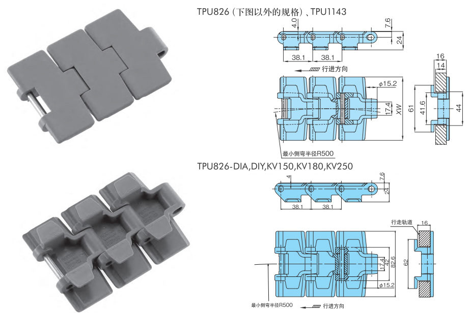 链节距(mm) 后弯半径mm