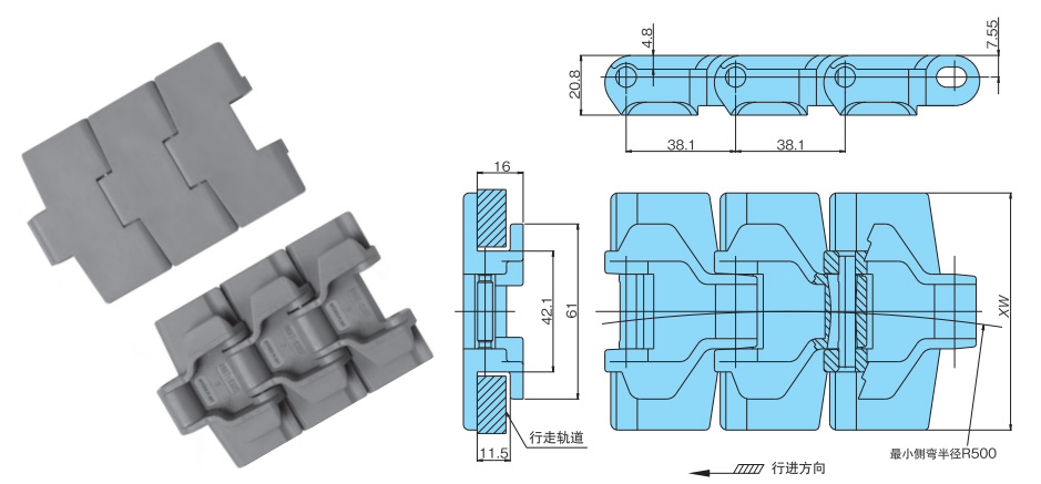 链节距(mm) 后弯半径mm