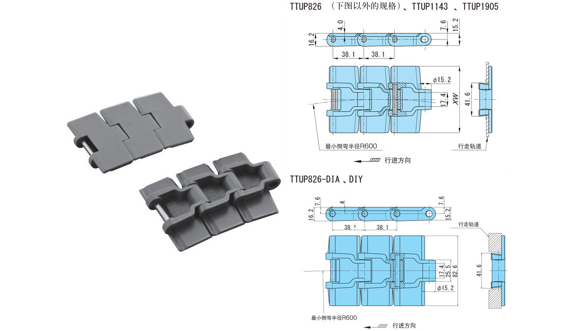 TTUP型塑料顶板链主要规格
